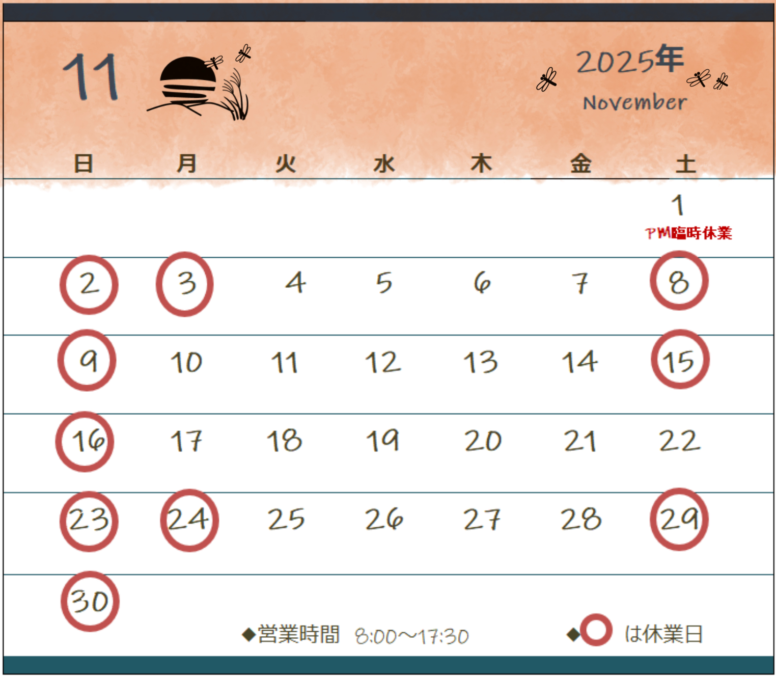 11月の営業日カレンダーです。
