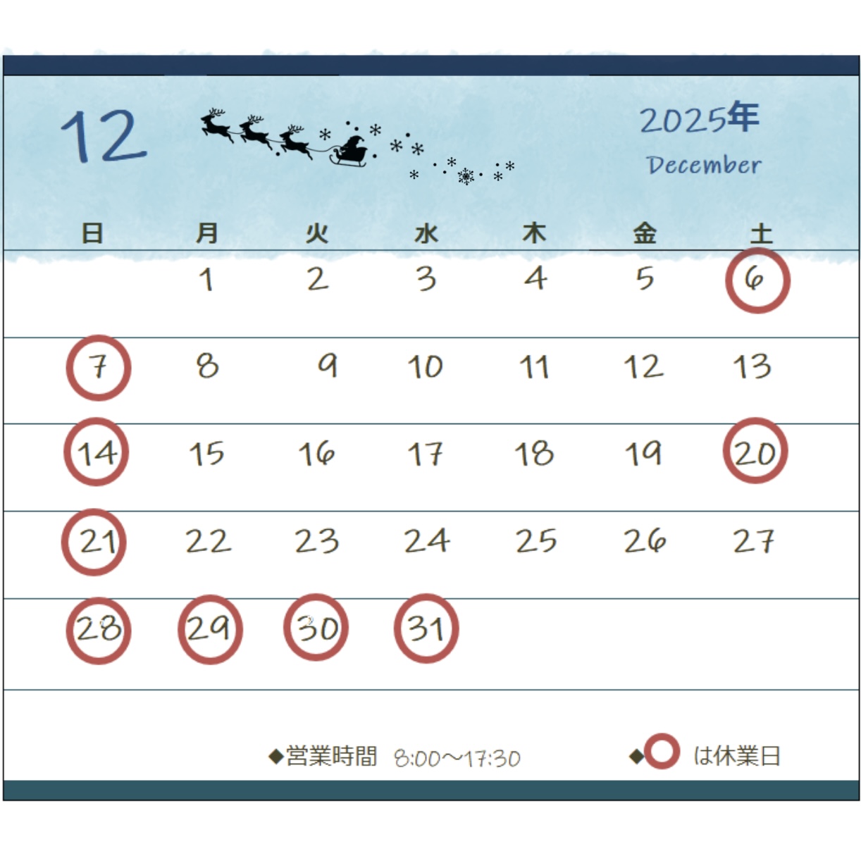 年末年始ですが 12月28日から1月4日まで お休みをいただきます。