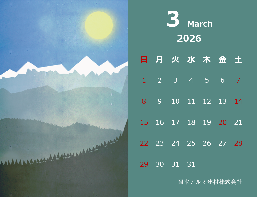 投稿者: okaalumi_admin 日付: 2026年3月4日 暖かさを感じる日もちらちらと・・・*゚✲ฺ(*´꒳`*)*゚✲ฺ🎵 3月の営業日カレンダーです。 今月もどうぞよろしくお願いいたします(*ᴗˬᴗ)⁾⁾⁾ꕤ